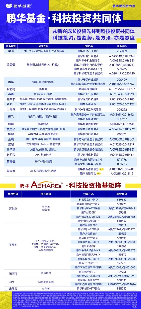 2025,在DeepSeek掀起的AI科技浪潮下,鹏华基金构建了独特的“科技投资共同体”模式。通过主动管理与被动工具的深度融合,鹏华基金已打造出覆盖科技各细分领域的多元投资矩阵。