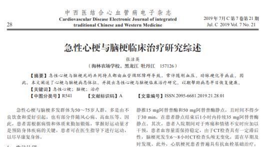 参考资料:急性心梗与脑梗临床治疗研究综述,张洁英,中西医结合心血管病电子杂志,2019-07-24